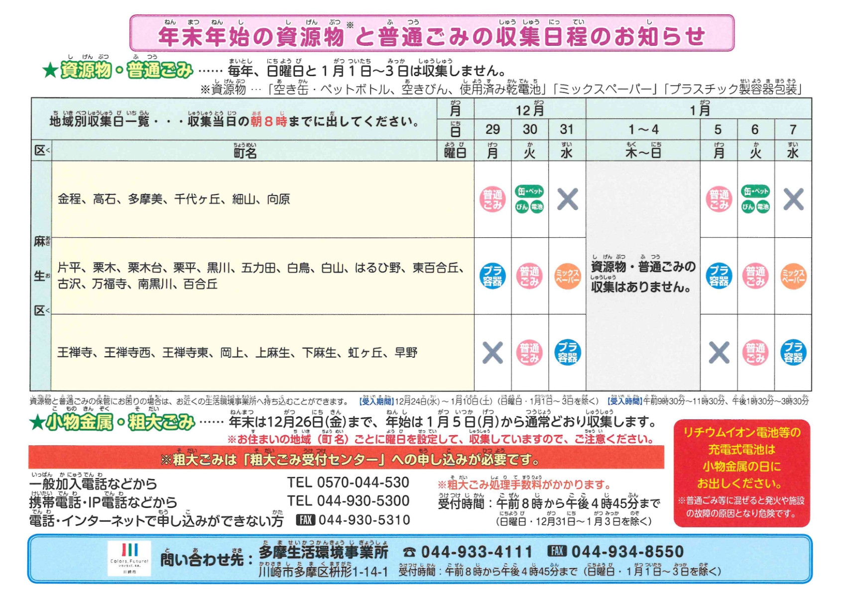 年末年始資源ごみと普通ごみの収集日程