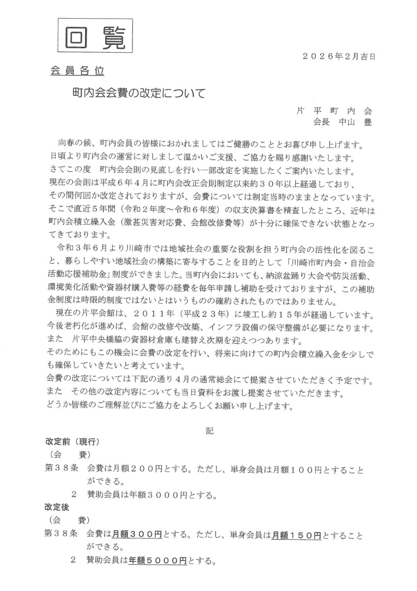 町内会会費の改定について